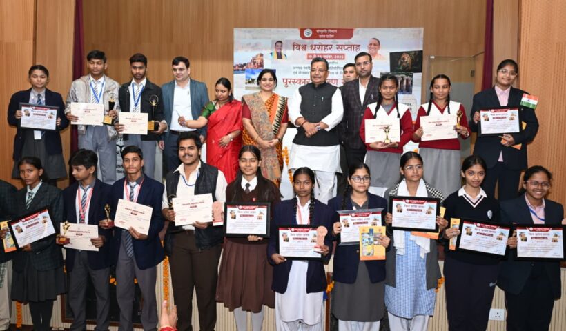 विश्व धरोहर सप्ताह के दौरान आयोजित की गयी विभिन्न गतिविधियों के विजयी प्रतिभागियों को उ0प्र0 के पर्यटन एवं संस्कृति मंत्री जयवीर सिंह ने पुरस्कार वितरित…