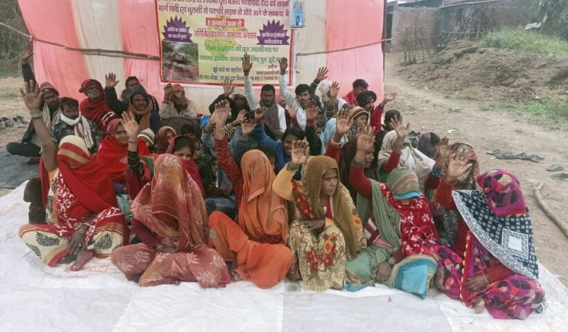 सड़क की मांग को लेकर कड़ाके की ठंड में भी अनशन जारी