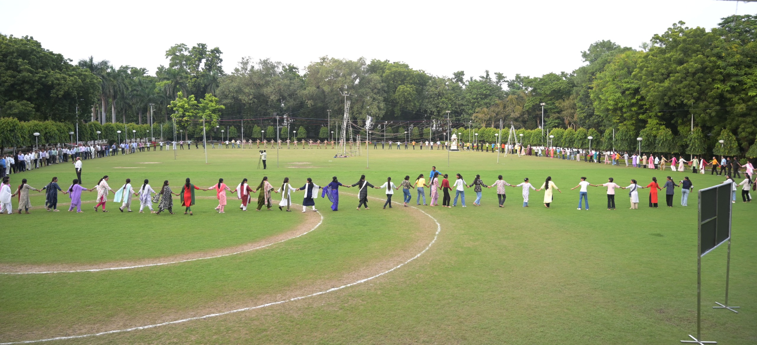 इस अवसर पर राजभवन के समस्त अधिकारी, कर्मचारीगण, अध्यासितगण व लखनऊ स्थित राज्य विश्वविद्यालयों के छात्र-छात्राएं तथा अध्यापकगण बड़ी संख्या में सम्मिलित हुए। कार्यक्रम के दौरान सभी प्रतिभागियों ने एक साथ ‘वंदे मातरम‘, ‘भारत माता की जय‘, ‘मेरा भारत विकसित भारत‘, ‘मेरी माटी मेरा देश‘ जैसे जोशीले उद्घोष के साथ मानव श्रृंखला को आगे बढ़ाया।