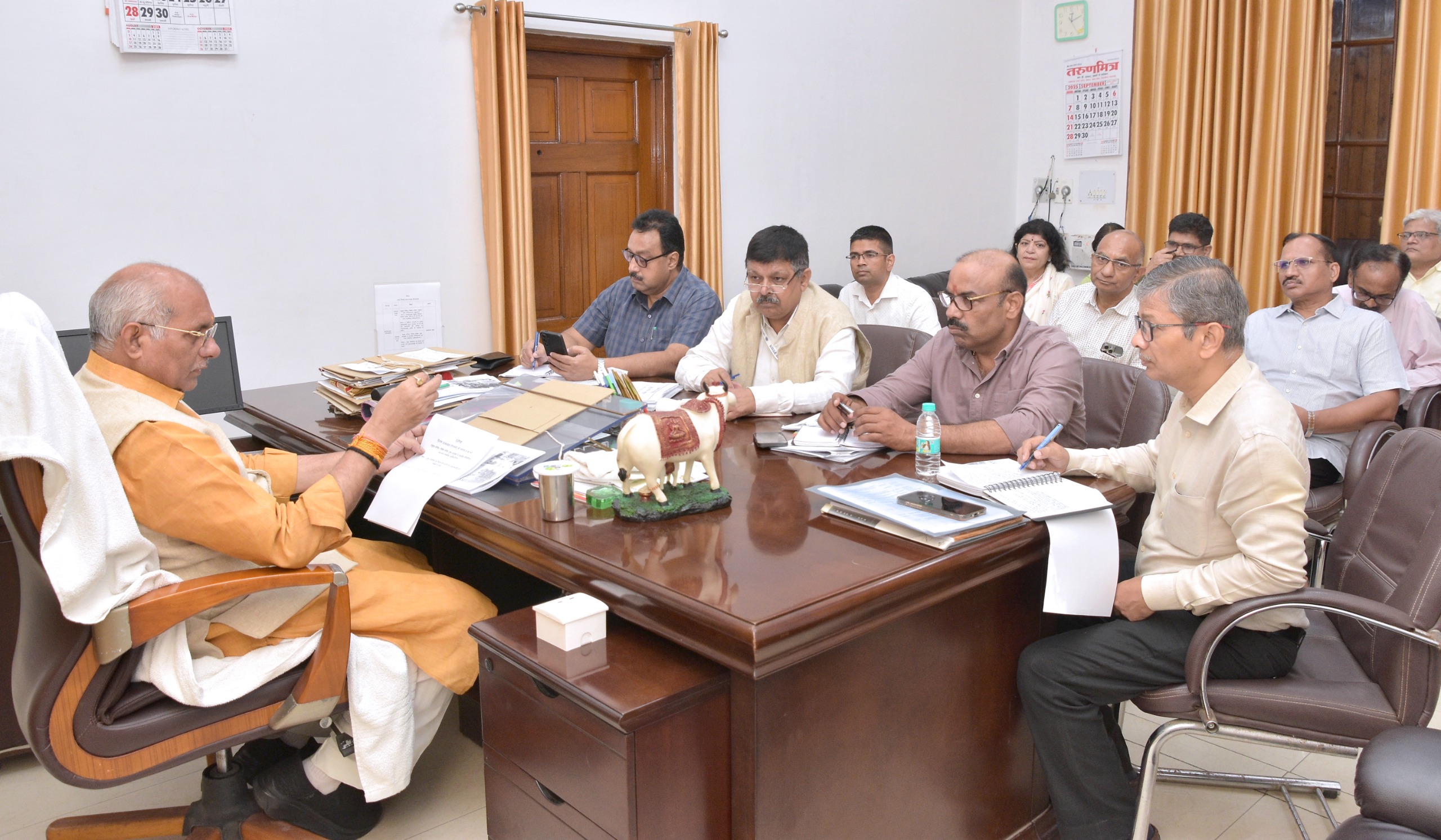 बैठक में पशुधन एवं दुग्ध विकास के प्रमुख सचिव श्री मुकेश मेश्राम ने मंत्री जी को आश्वस्त करते हुए कहा कि उनसे प्राप्त निर्देशों का अक्षरशः अनुपालन सुनिश्चित किया जायेगा। गो आश्रय स्थलांे पर सभी आवश्यक व्यवस्थाएं सुनिश्चित कराई जायेगी। उन्होंने अधिकारियों को गो आश्रय स्थलों के नियमित निरीक्षण करने, योजनाओं के भली भाति क्रियान्वयन एवं व्यापक प्रचार प्रसार करने एवं विभाग द्वारा संचालित योजनाओं का लाभ अधिक से अधिक किसानों एवं पशुपालकों को पहुचाये जाने के निर्देश दिए।