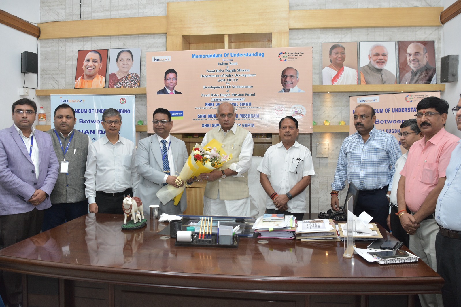 नन्दबाबा दुग्ध मिशन पोर्टल तैयार करने एवं संचालन के लिए नन्दबाबा दुग्ध मिशन एवं इण्डियन बैंक के मध्य एमओयू सम्पादित