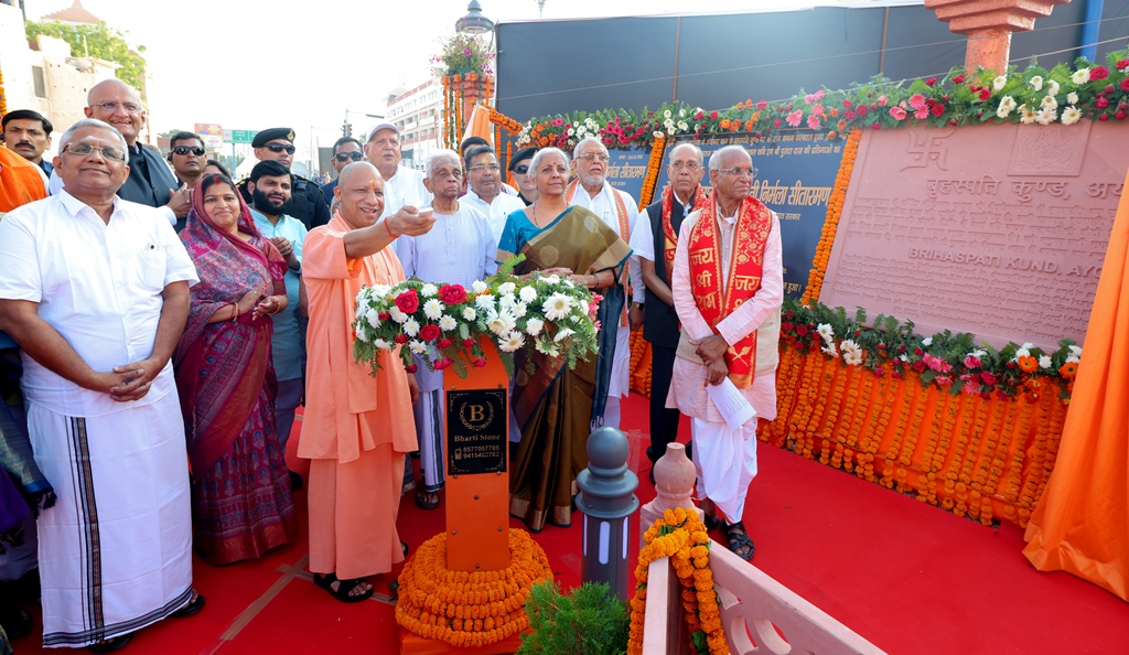 केन्द्रीय वित्त एवं कॉरपोरेट कार्य मंत्री श्रीमती निर्मला सीतारामन और उत्तर प्रदेश के मुख्यमंत्री योगी आदित्यनाथ जी ने आज अयोध्या स्थित बृहस्पति कुण्ड स्थल में दक्षिण भारत के प्रमुख संतों श्री पुरंदर दास, श्री त्यागराजा और श्री अरुणाचल कवि की प्रतिमाओं का अनावरण तथा बृहस्पति कुण्ड के पर्यटन विकास एवं सौन्दर्यीकरण कार्यां का लोकार्पण किया। इसके उपरान्त, केन्द्रीय वित्त एवं कॉरपोरेट कार्य मंत्री और मुख्यमंत्री जी ने श्रीराम जन्मभूमि मन्दिर पी0एफ0सी0 लॉन में आयोजित कार्यक्रम प्रतिभाग किया। इस अवसर पर दक्षिण भारत के 39 प्रसिद्ध संगीतकारों द्वारा प्रस्तुतियां, दक्षिण भारतीय भाषाओं में कर्नाटक संगीत की प्रस्तुति, जटिल राग और ताल के मणिकांचन संयोग का अद्भुत प्रदर्शन, मृदंगम, कंजीरा, घाटम एवं मोर्सिंग का विलक्षण वाद्य संयोजन कार्यक्रमों की प्रस्तुति की गयी। इसके पूर्व, मुख्यमंत्री जी ने श्रीराम जन्मभूमि मन्दिर तथा श्रीहनुमानगढ़ी मन्दिर में दर्शन-पूजन किया। कार्यक्रम के उपरान्त केन्द्रीय वित्त एवं कॉरपोरेट कार्य मंत्री ने राम की पैड़ी पर सरयू जी की आरती, जलाभिषेक व दर्शन-पूजन किया।