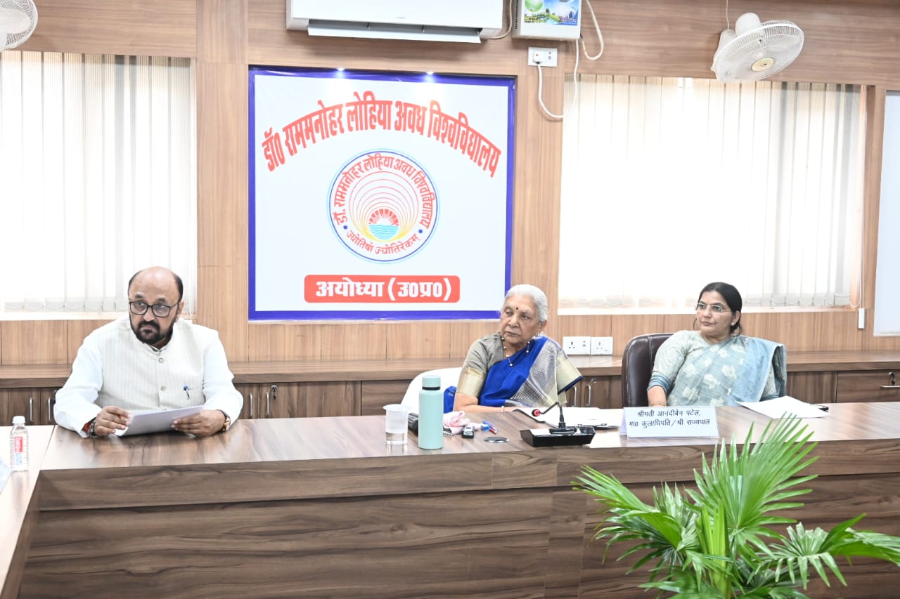 प्रदेश की राज्यपाल एवं विश्वविद्यालय की कुलाधिपति श्रीमती आनंदीबेन पटेल की अध्यक्षता में आज डॉ. राम मनोहर लोहिया अवध विश्वविद्यालय, अयोध्या के कौटिल्य प्रशासनिक भवन के सभा कक्ष में विश्वविद्यालय के शैक्षणिक उन्नयन एवं समग्र विकास से जुड़े विषयों पर एक महत्वपूर्ण बैठक सम्पन्न हुई।
