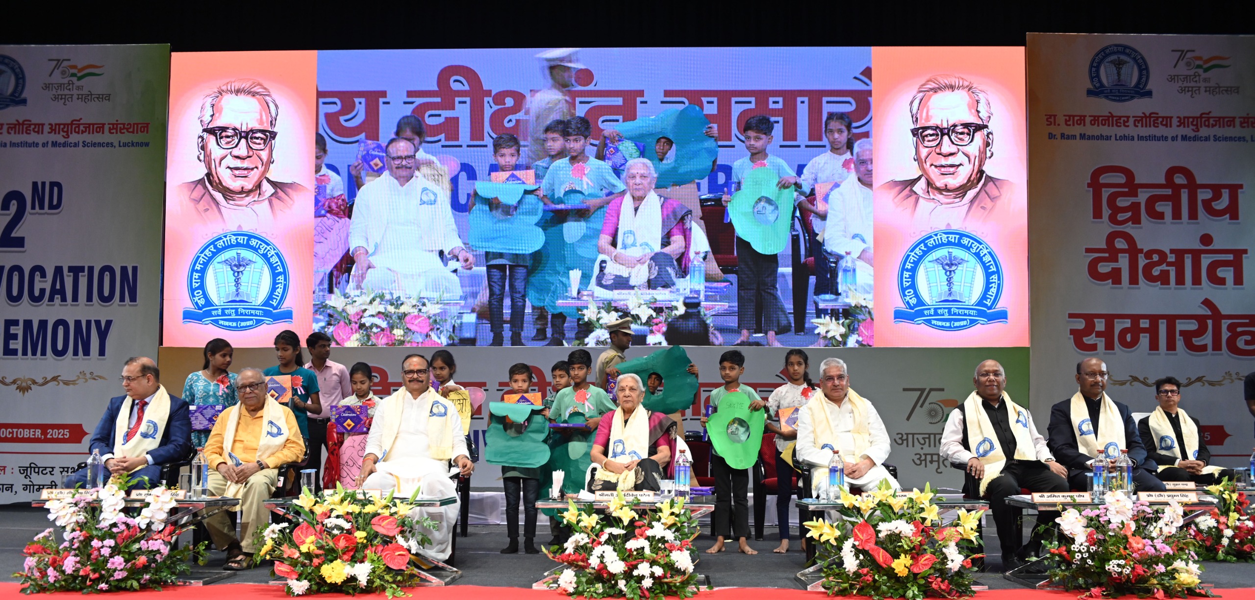 प्रदेश की राज्यपाल एवं कुलाध्यक्ष श्रीमती आनंदीबेन पटेल की अध्यक्षता में आज डॉ0 राम मनोहर लोहिया आयुर्विज्ञान संस्थान, लखनऊ का द्वितीय दीक्षांत समारोह संपन्न हुआ। इस अवसर पर राज्यपाल महोदया ने 297 विद्यार्थियों को उपाधियाँ एवं मेधावियों को पदक प्रदान कर सम्मानित किया। उन्होंने सभी उपाधियों को बटन दबाकर डिजीलॉकर पर अपलोड भी किया।