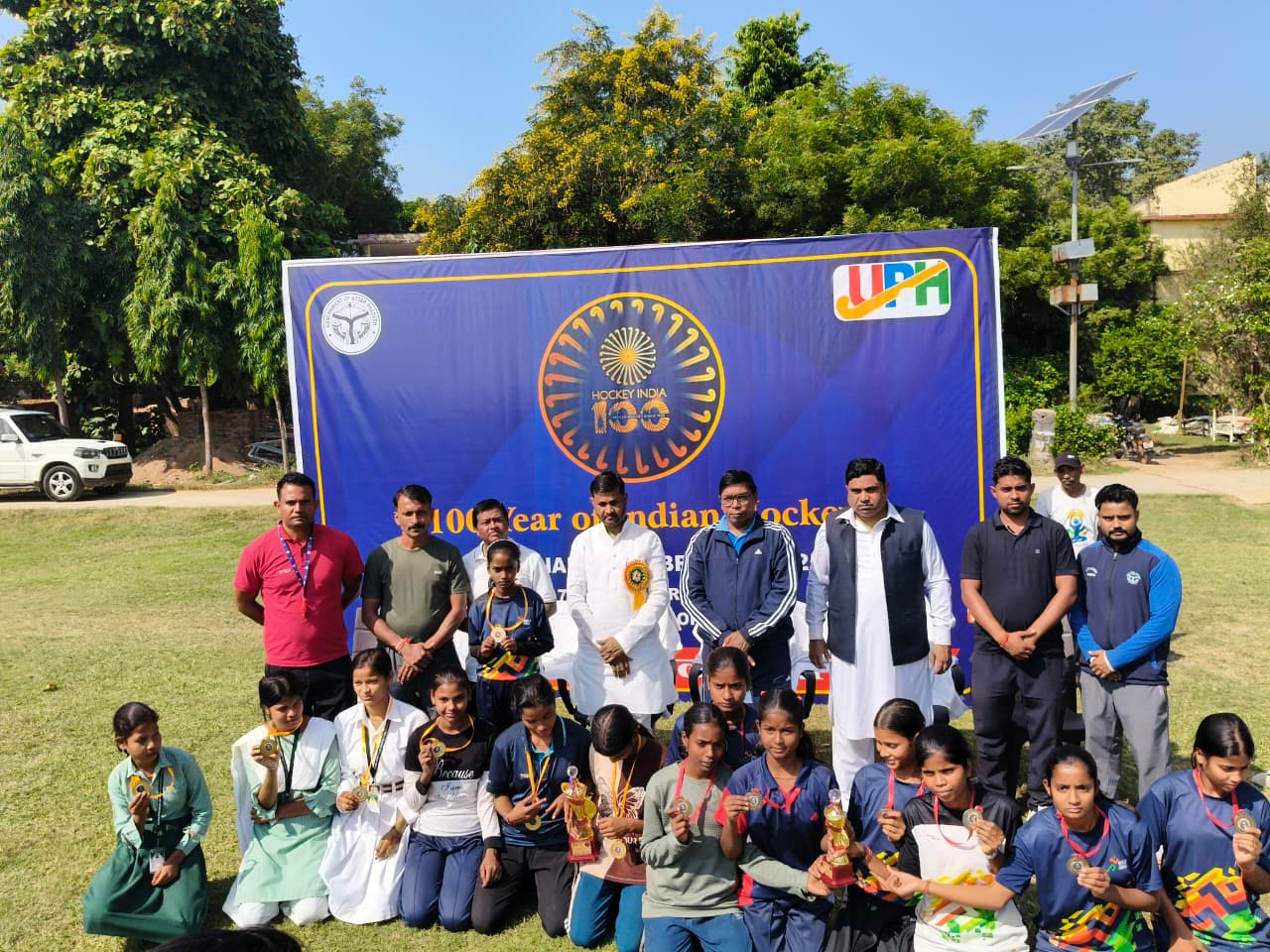 भारतीय हॉकी के 100 वर्ष पूरे होने के अवसर पर आज दिनांक-07-11-2025 को प्रातः 09:00 बजे महिला एवं पुरूष वर्ग की हॉकी मैच राजकीय स्पोर्ट्स स्टेडियम में आयोजित करायी गयी। महिला एवं पुरुष हॉकी मैच का उद्घाटन श्रीमती विष्णुप्रिया, जिला युवा अधिकारी, नेहरू युवा केन्द्र, हमीरपुर द्वारा किया गया। महिला हॉकी मैच में स्टेडियम हमीरपुर एवं इस्लामिया इण्टर कॉलेज हमीरपुर के मध्य खेला गया जिसमें इस्लामिया इण्टर कॉलेज हमीरपुर से मेनका पाल द्वारा फस्ट हॉफ में 9 मिनट 43 सेकेन्ड में गोल करते हुये 1-0 से इस्लामिया इण्टर कालेज विजेता रही एवं स्टेडियम हमीरपुर उपविजेता रही।
