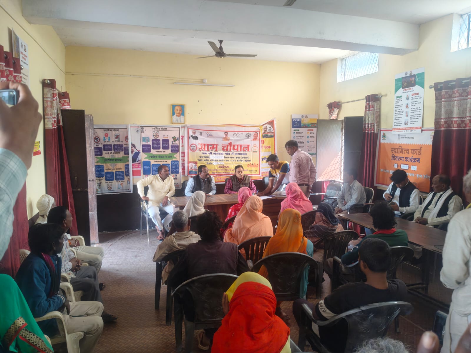 कुरारा, हमीरपुर। विकासखंड क्षेत्र के उमराहट व टोडरपुर ग्राम पंचायत में ग्राम चौपाल का आयोजन किया गया जिसमें मौके पर आयी 7 शिकायतों का निस्तारण किया गया। विकासखंड क्षेत्र के ग्राम पंचायत उमराहट में खंड विकास अधिकारी शिव नारायण कश्यप की अध्यक्षता में ग्राम चौपाल का आयोजन किया गया जिसमे गांव के मानसिंह ने वृद्धा पेंशन न मिलने की शिकायत की। जिस पर केवाईसी कराने के लिए कहा गया, विष्णु कुमार ने सीसी रोड बनवाने की मांग की जिस पर कार्य योजना बनाकर कार्य कराने की बात कही। वहीं टोडरपुर गांव में ग्राम पंचायत सचिव नसीम अहमद की अध्यक्षता में ग्राम चौपाल आयोजित की गयी जिसमें राजू ने सीसी रोड में पानी का भराव होने से आवागमन में दिक्क़त की शिकायत की। सूरज ने सीसी मे पानी जमा होने की शिकायत कर नाला बनवाने की मांग की। दिनेश व रामकली ने पुलियों में साइड में मिट्टी भरवाने की मांग की। राम स्वरुप ने ग्राम पंचायत मे अवैध मकान बनने की शिकायत की। ग्राम चौपाल में ग्राम प्रधान, सचिव जमाल अहमद, कोटेदार एएनएम, आशा, आंगनबाड़ी आदि मौजूद रहे।