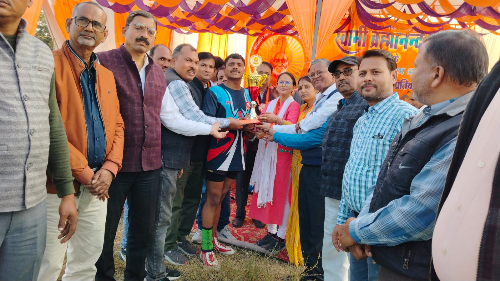 हमीरपुर/राठ। बुंदेलखंड मालवीय त्याग मूर्ति परम पूज्य स्वामी ब्रह्मानंद जी के 131वें जन्मदिवस पर ब्रह्मानंद महाविद्यालय परिसर में शनिवार को विविध खेलकूद प्रतियोगिताओं का भव्य आयोजन हुआ। कार्यक्रम का शुभारंभ महाविद्यालय के प्राचार्य प्रो. डॉ. सुरेंद्र सिंह ने स्वामी ब्रह्मानंद जी के चित्र पर माल्यार्पण व दीप प्रज्वलन कर किया। संयोजक डॉ. भावना शर्मा ने प्रतियोगिताओं की रूपरेखा रखी। 100 मीटर दौड़ में छात्रा वर्ग में बीएससी एजी थर्ड ईयर की कु.भाषा ने प्रथम स्थान प्राप्त किया। जबकि कु. मुस्कान (सेकंड ईयर) द्वितीय और कु. प्रांजल (सेकंड ईयर) तृतीय रहीं। छात्र वर्ग में अंकित विश्वकर्मा (थर्ड सेम) प्रथम, अजय सोनी द्वितीय एवं लोकेंद्र कुमार (फर्स्ट सेम) तृतीय स्थान पर रहे।