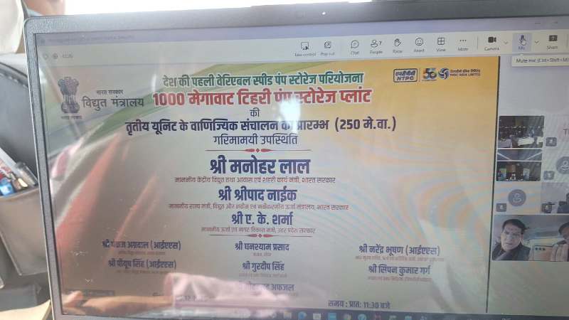 देश की पहली वेरिएबल स्पीड पंप स्टोरेज परियोजना-1000 मेगावाट टिहरी पंप स्टोरेज प्लांट की तृतीय यूनिट का वाणिज्यिक संचालन आज केंद्रीय विद्युत तथा आवास एवं शहरी कार्य मंत्री मनोहर लाल खट्टर एवं उत्तर प्रदेश सरकार के ऊर्जा मंत्री ए.के. शर्मा की वर्चुअल उपस्थिति में विधिवत शुभारंभ किया गया। इस अवसर पर उत्तर प्रदेश को ऊर्जा क्षेत्र में एक नई क्षमता प्राप्त हुई है, जो राज्य के विकास और उपभोक्ताओं को सस्ती एवं गुणवत्तापूर्ण बिजली उपलब्ध कराने में सहायक होगी।