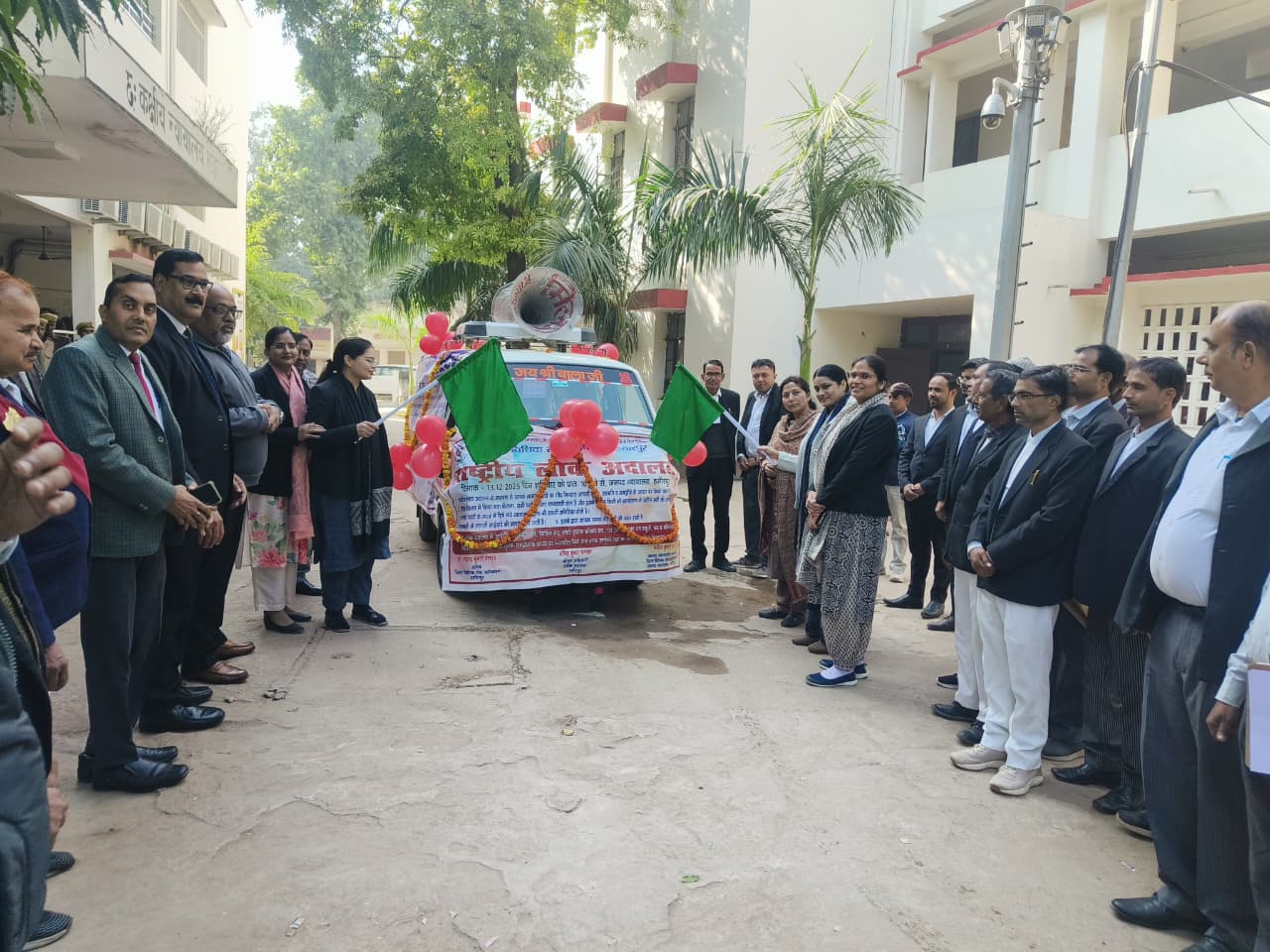 हमीरपुर। आज दिनांक 10.12.2025 को जनपद न्यायाधीश मनोज कुमार राय एवं प्रधान न्यायाधीश परिवार न्यायालय जी0 पी0 सिंह की अध्यक्षता में आगामी राष्ट्रीय लोक अदालत दिनांक 13.12.2025 के सफल आयोजन हेतु पाॅक्सो न्यायालय की पीठासीन अधिकारी श्रीमती कीर्ति माला एवं सिविल जज (सी0डि0) श्रीमती निहारिका जायसवाल द्वारा लोक अदालत के प्रचार वाहन को हरी झण्डी दिखाकर रवाना किया गया। प्रचार वैन का मुख्य उददेश्य लोक अदालत के सम्बन्ध में जानकारी देकर आम जन मानस को जागरूक करना है इस अवसर पर सचिव जिला विधिक सेवा प्राधिकरण महेन्द्र कुमार पाण्डेय द्वारा बताया गया कि जनपद के दूरस्थ स्थानों पर जायेगी ताकि ग्रामीण लोगों को भी लोक अदालत के बारे में जानकारी प्राप्त हो सके, जिससे न्यायालयों में लम्बित मामले व ट्रैफिक चालान, चेक बाउंस आदि के मामलों को अधिक से अधिक निस्तारित कराया जा सके। प्रचार वाहन जनपद न्यायालय हमीरपुर से बस स्टैण्ड, कालपी चैराहा, सिटी फाॅरेस्ट, जिला अस्पताल, डिग्गी से होते हुये लक्ष्मीबाई तिराहा, मेरापुर, भिलावां, रमेड़ी तिराहा दीक्षित स्वीटस, कोतवाली से चौरादेवी से कुरारा व सुमेरपुर से सम्बन्धित गांव के विभिन्न स्थानों में प्रचार वैन के माध्यम से लोगो को जानकारी प्रदान की गयी। इस अवसर पर प्रथम अपर जिला जज उदय वीर सिंह, विशेष न्यायाधीश एस.सी./एस. टी. एक्ट, रनवीर सिंह, विशेष न्यायाधीश द.प्र.क्षे. अनिल कुमार खरवार, मुख्य न्यायिक मजिस्ट्रेट विनय कुमार, सिविल जज सी.डि./एफ.टी.सी. श्रीमती वन्दना अग्रवाल, सिविल जज (जू0डि0)/एफ0टी0सी0 (महिलाओं के विरूद्व अपराध) सुश्री कीर्ति मिश्रा, सिविल जज (जू0डि0)/एफ0टी0सी0 सुश्री शैली शरण, अध्यक्ष स्थाई लोक अदालत प्रमोद कुमार आदि लोग उपस्थित रहे।