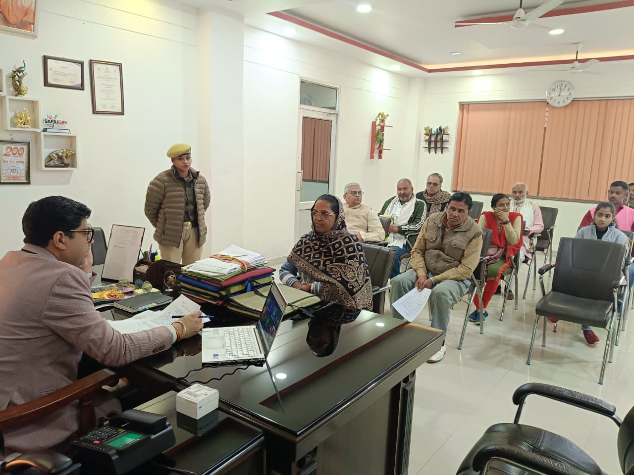 हमीरपुर। आज जिलाधिकारी घनश्याम मीना ने कलेक्ट्रेट कार्यालय में जनसुनवाई कर जन सामान्य की शिकायतों को सुना एवं संबंधित अधिकारियों को प्राप्त शिकायतों का गुणवत्तापूर्ण व समयबद्ध तरीके से निस्तारण करने के निर्देश दिए।