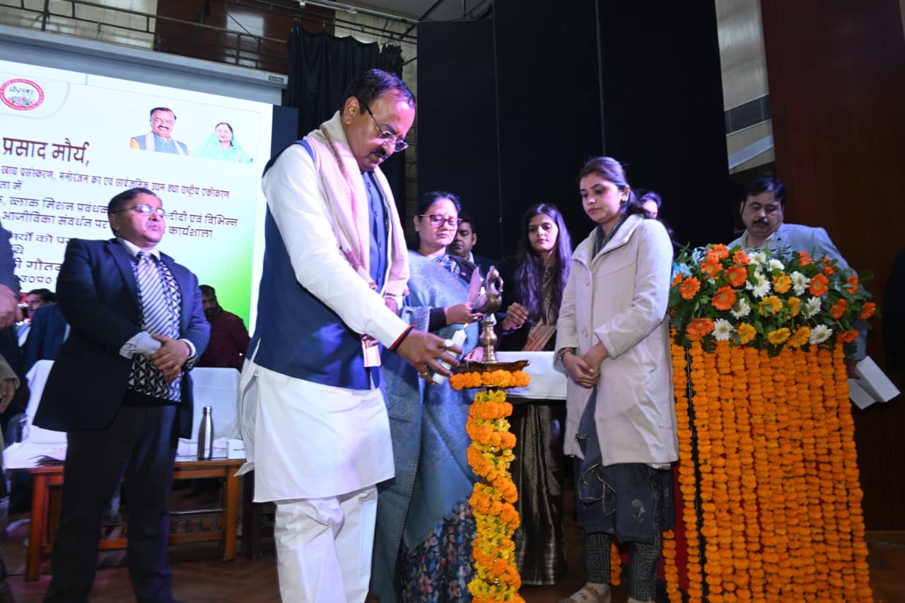 उप मुख्यमंत्री श्री मौर्य ने कार्यशाला के दौरान ग्रामीण आजीविका मिशन के अंतर्गत संचालित योजनाओं की प्रगति की समीक्षा, जमीनी स्तर पर आ रही चुनौतियों पर चर्चा तथा मिशन के लक्ष्यों को और अधिक प्रभावी ढंग से प्राप्त करने हेतु आवश्यक दिशा-निर्देश प्रदान किए। अपने प्रेरक, ओजस्वी व सारगर्भित उद्बोधन में उप मुख्यमंत्री ने जहां अधिकारियों को मिशन के उद्देश्यों के अनुरूप बेहतर समन्वय एवं प्रभावी क्रियान्वयन के लिए मार्गदर्शन भी दिया गया, वहीं उनमे नई ऊर्जा व नये उत्साह का संचार किया। कार्यशाला से ग्रामीण क्षेत्रों में स्वरोजगार, महिला सशक्तिकरण एवं ग्रामीण महिलाओ के आजीविका संवर्धन से जुड़े कार्यक्रमों को नई गति मिलेगी। लखपति दीदियो की संख्या बढ़ाने, नमो ड्रोन दीदियो की सक्रियता सुनिश्चित करने सहित समूहो की संख्या बढ़ाने व निष्क्रिय समूहो को सक्रिय किये जाने की आवश्यकता पर विशेष बल दिया गया।