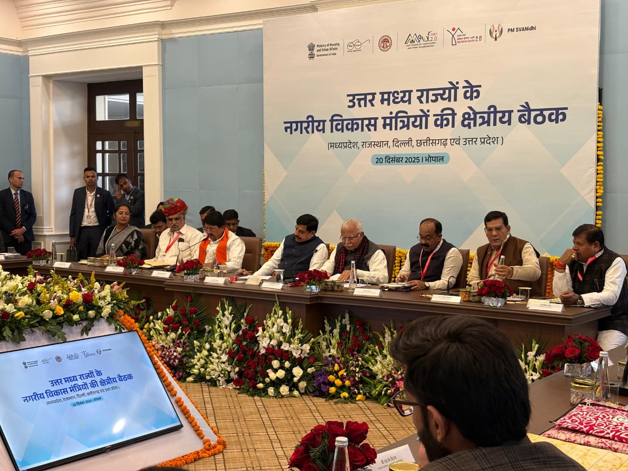भारत सरकार के आवासन एवं शहरी कार्य मंत्री श्री मनोहर लाल खट्टर की अध्यक्षता में मध्य प्रदेश की राजधानी भोपाल में उत्तर-मध्य क्षेत्र के शहरी विकास से संबंधित विषयों पर एक महत्वपूर्ण क्षेत्रीय बैठक का आयोजन किया गया। बैठक का उद्देश्य तेजी से बढ़ते शहरीकरण की चुनौतियों, भावी आवश्यकताओं और समाधानात्मक रणनीतियों पर राज्यों के साथ गहन विचार-विमर्श करना रहा। बैठक में उत्तर-मध्य क्षेत्र के अंतर्गत आने वाले राज्यों में शहरी विकास की वर्तमान स्थिति, अधोसंरचना की जरूरतों, आवास, परिवहन, स्वच्छता, ऊर्जा, पर्यावरण संरक्षण तथा स्मार्ट और टिकाऊ शहरों के निर्माण जैसे विषयों पर विस्तार से चर्चा की गई। इस दौरान केंद्र और राज्य सरकारों के बीच समन्वय को और अधिक प्रभावी बनाने पर विशेष जोर दिया गया।