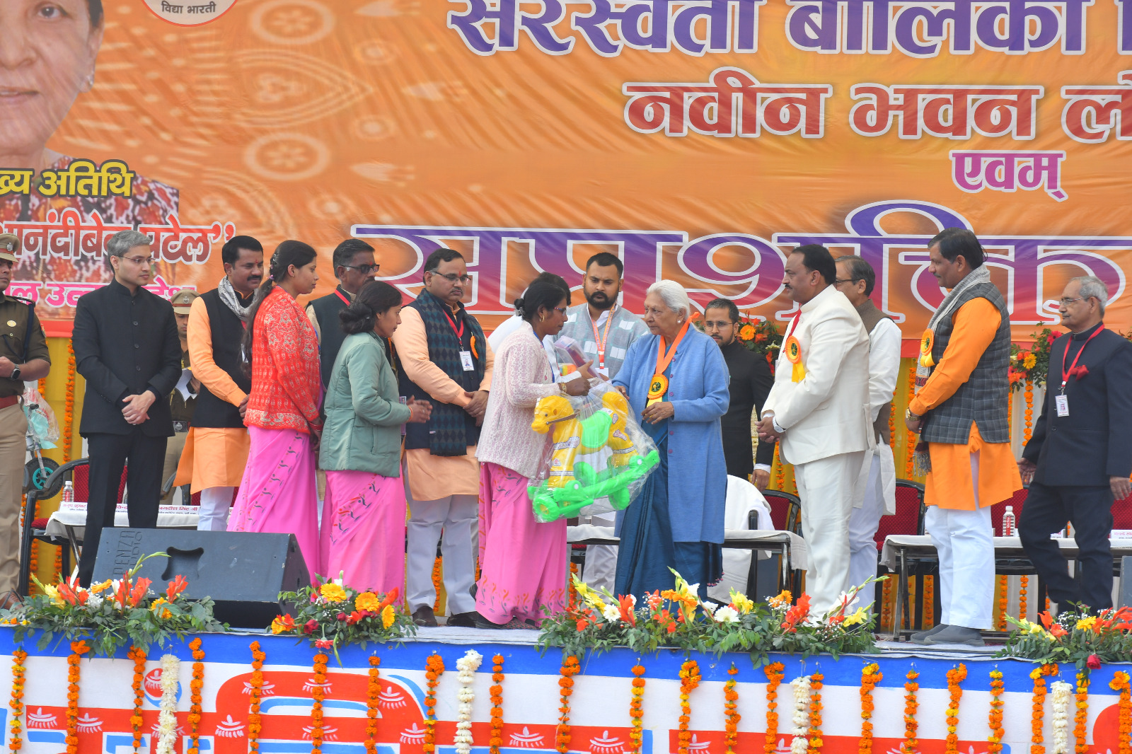 प्रदेश की राज्यपाल श्रीमती आनंदीबेन पटेल जी ने आज जनपद फतेहपुर में विद्या भारती अखिल भारतीय शिक्षा संस्थान से संबद्ध सरस्वती बालिका विद्या मंदिर के नवनिर्मित भवन का लोकार्पण किया। इस अवसर पर उन्होंने केंद्र व राज्य सरकार की विभिन्न जनकल्याणकारी योजनाओं के अंतर्गत बड़ी संख्या में लाभार्थियों को लाभ प्रदान करते हुए सामग्री, प्रमाण पत्र एवं स्वीकृति पत्र वितरित किए।