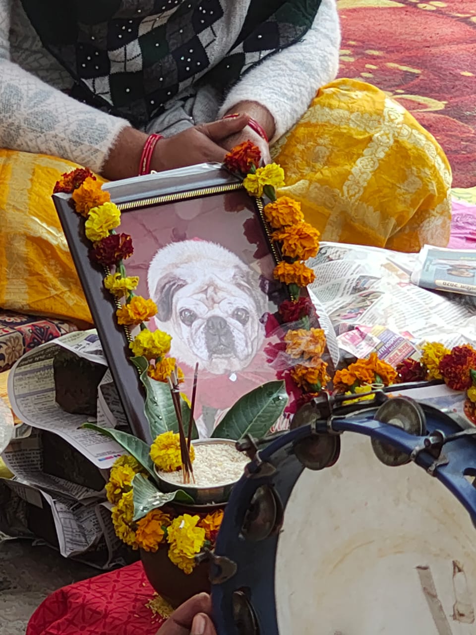डॉगी जैनी का तेरहवीं संस्कार वैदिक क्रियाकलापों रीति रिवाज साथ के मनाया गया।