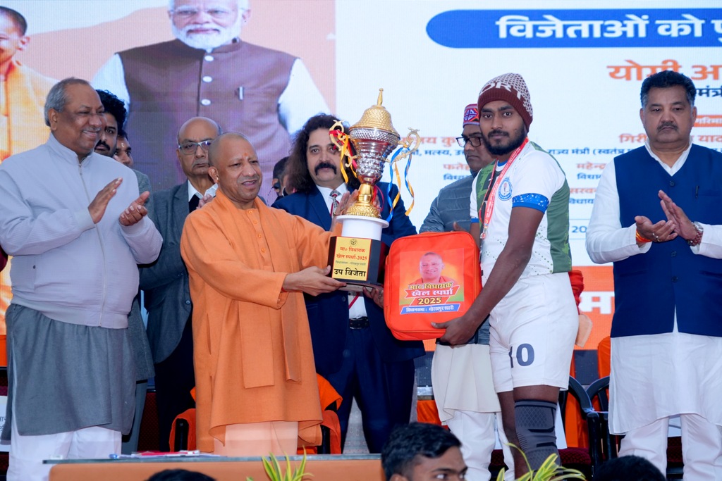 लखनऊ : उत्तर प्रदेश के मुख्यमंत्री योगी आदित्यनाथ ने आज गोरखपुर में वीर बहादुर सिंह स्पोर्ट्स कॉलेज में मा0 विधायक खेल प्रतिस्पर्धा-2025 के विजेताओं को पुरस्कार प्रदान किये।
