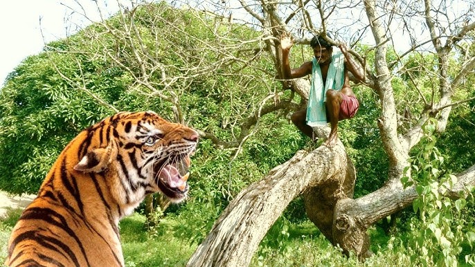 शेर धीरे-धीरे उसकी ओर बढ़ने लगा। चारों ओर अफरा-तफरी मच गई; उसके साथी भयभीत होकर केवल चिल्ला रहे थे। तभी उस ग्रामीण युवती ने बिना किसी हिचक के अपनी साड़ी उतारकर बाड़े में लटका दी।