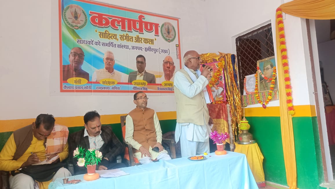 हमीरपुर/सुमेरपुर। “साहित्य संगीत और कला” साधकों को समर्पित संस्था, कलार्पण जनपद हमीरपुर के द्वारा वसंतपंचमी, माँ सरस्वती पूजन, महाकवि सूर्यकान्त त्रिपाठी निराला जी के जन्म दिवस तथा स्वतंत्रता संग्राम सेनानी सुभाष चन्द्र बोस जी के जन्मदिवस पर लालूसिंह पब्लिक स्कूल सुमेरपुर में हवन पूजन के उपरांत कवि गोष्ठी का आयोजन सम्पन्न हुआ।