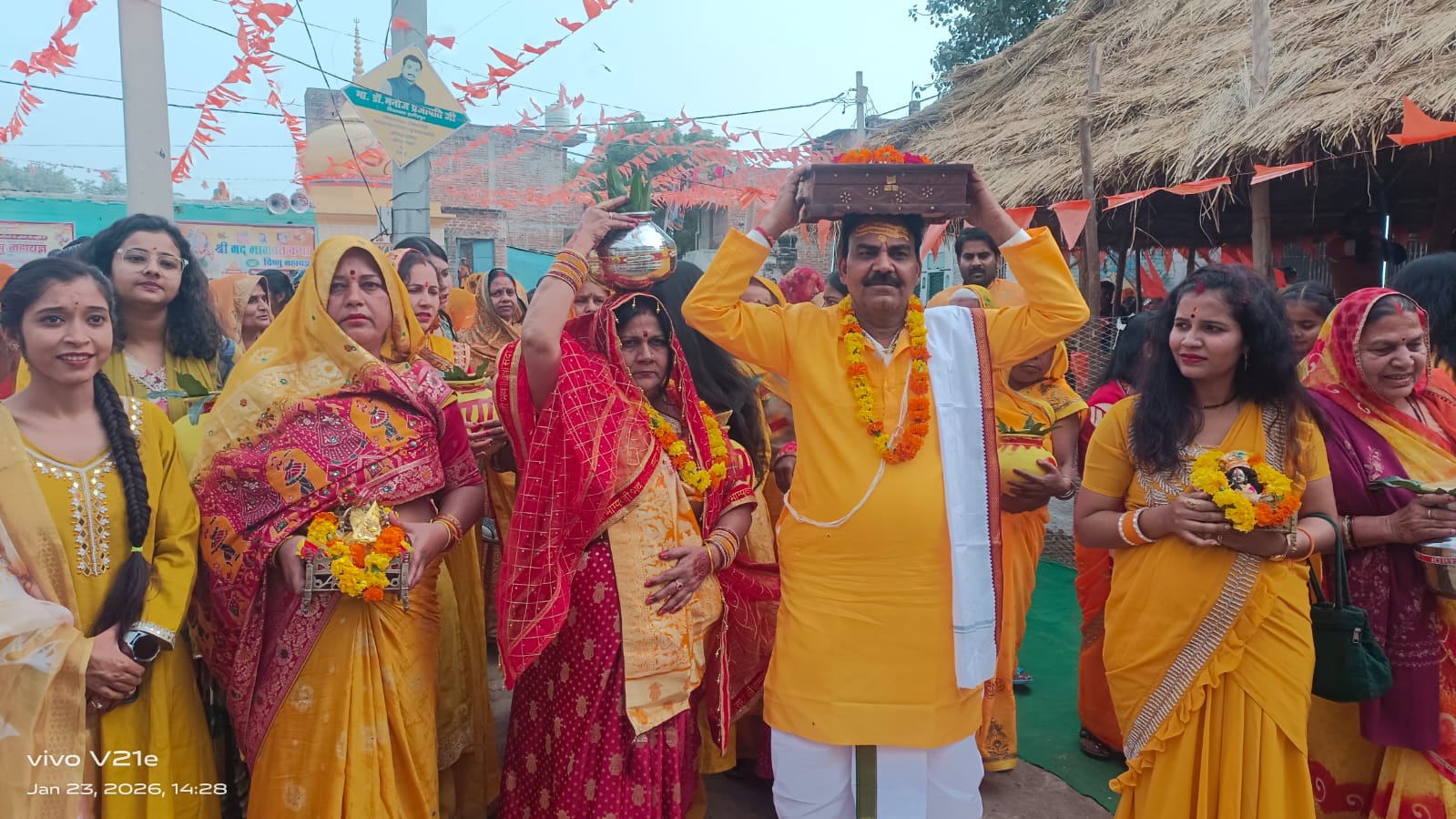 विकास खंड क्षेत्र के झलोखर गांव में बसंत पंचमी एवं गांव के स्थापना दिवस के अवसर पर ग्रामीणों के सहयोग से विष्णु महायज्ञ एवं श्रीमद्भागवत कथा महापुराण का आयोजन किया गया। आयोजन के पहले दिन भव्य कलश यात्रा के साथ धार्मिक अनुष्ठान का शुभारंभ हुआ। कलश यात्रा यज्ञ स्थल से शुरू होकर गांव के विभिन्न देव स्थलों में पूजा-अर्चना करते हुए मां भुइंयारानी मंदिर स्थित तालाब से जल भरकर पुनः यज्ञ स्थल पर पहुंची, जहां विधिवत समापन किया गया। इस दौरान महिलाएं पीले वस्त्र धारण कर सिर पर कलश रखे मंगल गीत गाती हुई चल रही थीं। ढोल-नगाड़ों के साथ पूरे गांव का भ्रमण कर माहौल भक्तिमय बना दिया गया।