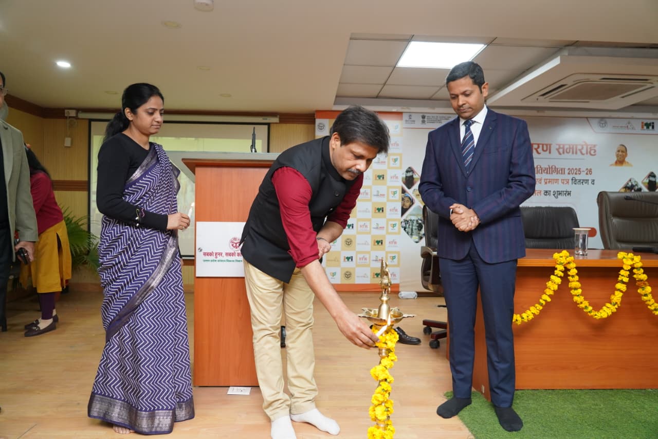 मुख्यमंत्री योगी आदित्यनाथ के नेतृत्व में उत्तर प्रदेश सरकार युवाओं को आत्मनिर्भर, रोजगारोन्मुख और वैश्विक प्रतिस्पर्धा के लिए सक्षम बनाने की दिशा में निरंतर प्रभावी कदम उठा रही है। इसी क्रम में प्रदेश के व्यावसायिक शिक्षा, कौशल विकास एवं उद्यमशीलता राज्य मंत्री (स्वतंत्र प्रभार) कपिल देव अग्रवाल के मार्गदर्शन में उत्तर प्रदेश कौशल विकास मिशन (न्च्ैक्ड) द्वारा इंडिया स्किल्स कॉम्पीटिशन-2025-26 के अंतर्गत राज्य स्तरीय कौशल प्रतियोगिता के विजेताओं का सम्मान समारोह बुधवार को कौशल विकास मिशन मुख्यालय, लखनऊ में भव्य रूप से आयोजित किया गया।