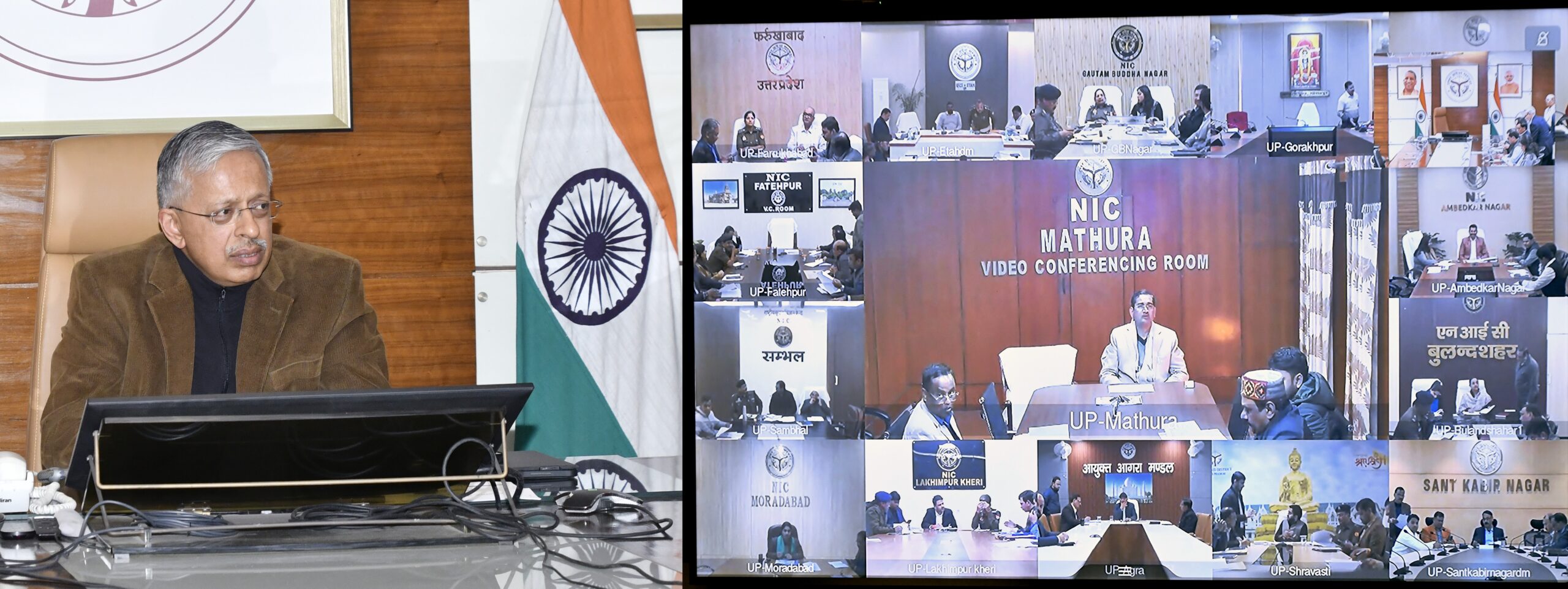 लखनऊः मुख्य सचिव श्री एस.पी.गोयल की अध्यक्षता में वीडियो कॉन्फ्रेंसिंग के माध्यम से सभी मंडलायुक्तों, जिलाधिकारियों एवं वरिष्ठ पुलिस अधिकारियों के साथ साप्ताहिक समीक्षा बैठक आयोजित की गई।