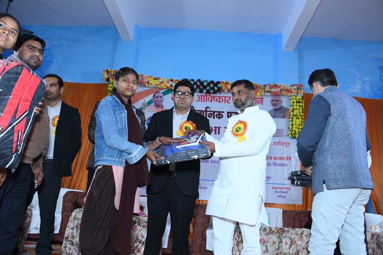 विज्ञान प्रदर्शनी में विजयी 5 बच्चों को टैबलेट, बैग एवं स्टेशनरी व प्रशस्ति पत्र, क्विज प्रतियोगिता में विजयी बच्चों को विज्ञान किट एवं स्टेशनरी, बैग व प्रशस्ति पत्र प्रदान किया गया। इससे पूर्व इन्हें मॉडल निर्माण आदि के लिए 3000 रुपए की धनराशि भी प्रदान की गई थी। शिक्षक अरूण भदौरिया द्वारा लिखित पुस्तक प्रायोगिक विज्ञान सभी प्रतिभागी बच्चों को प्रदान की गई।