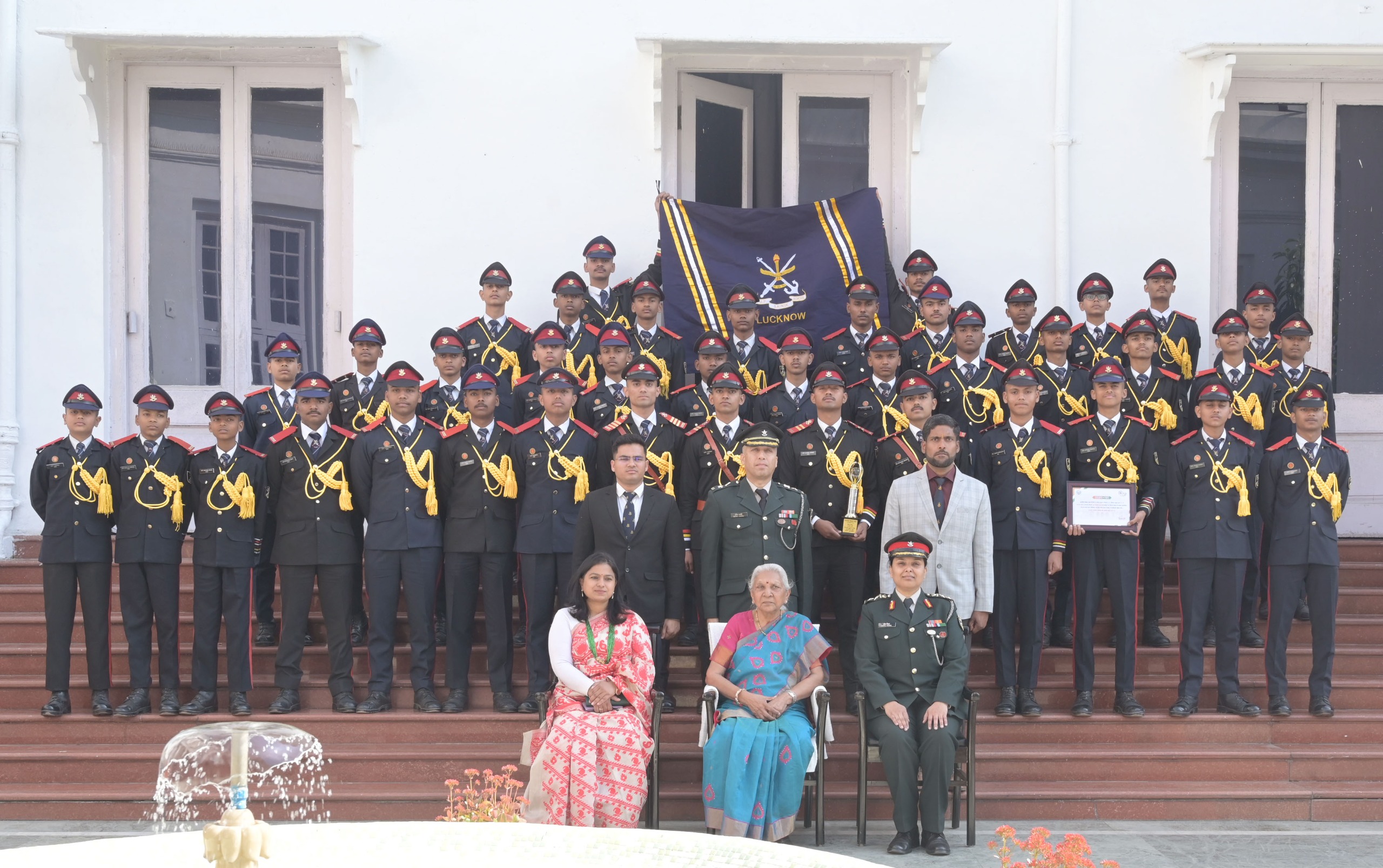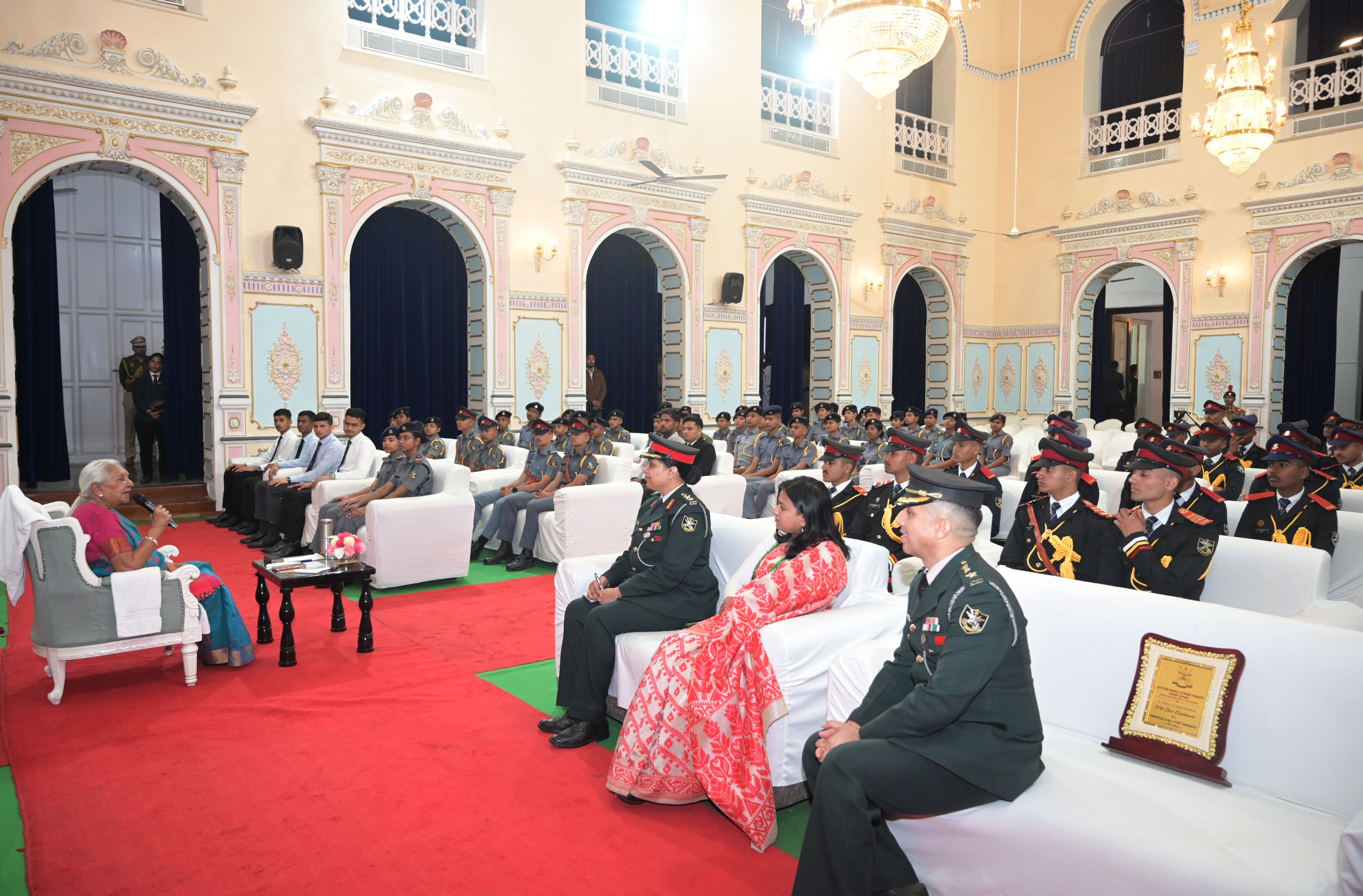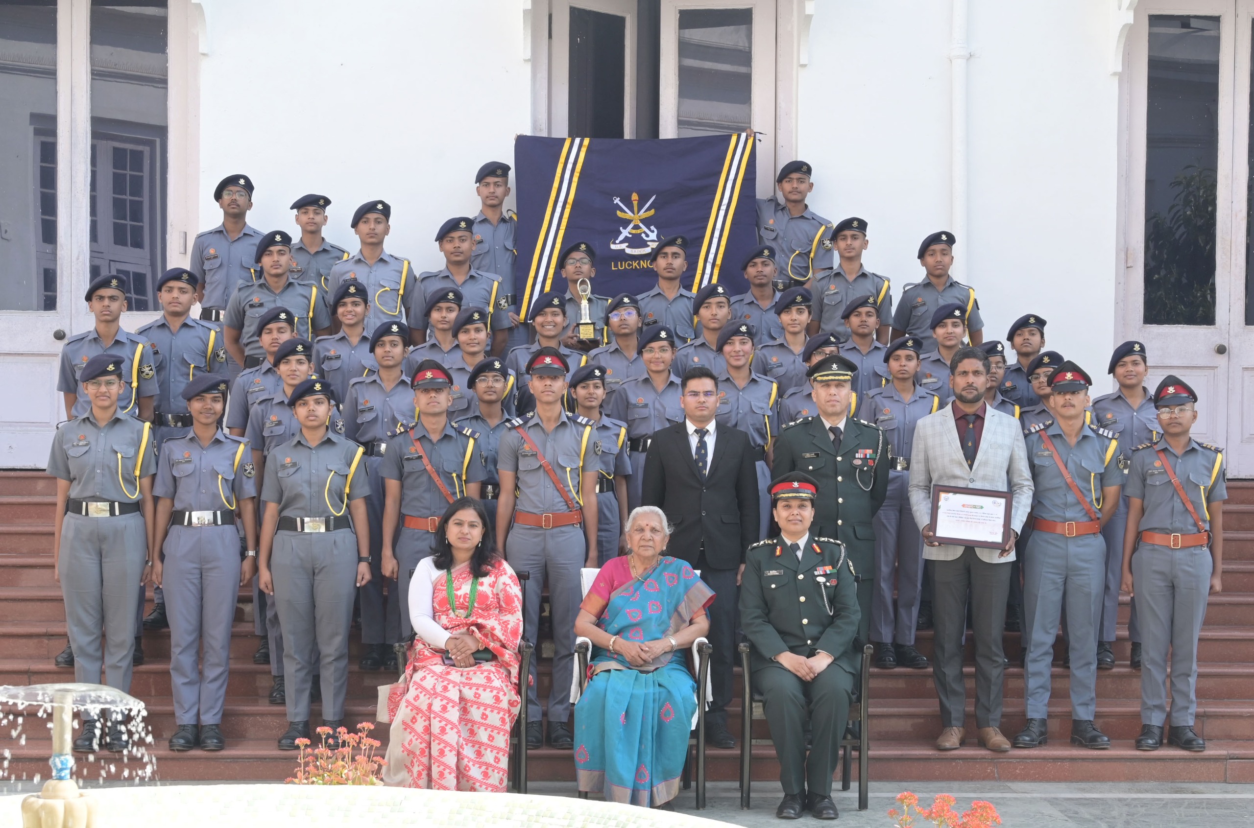 उत्तर प्रदेश की राज्यपाल श्रीमती आनंदीबेन पटेल से आज जन भवन में उत्तर प्रदेश सैनिक स्कूल के गणतंत्र दिवस परेड में पुरस्कृत एवं राष्ट्रीय रक्षा अकादमी (एनडीए) के लिए चयनित छात्रों ने शिष्टाचार भेंट की।