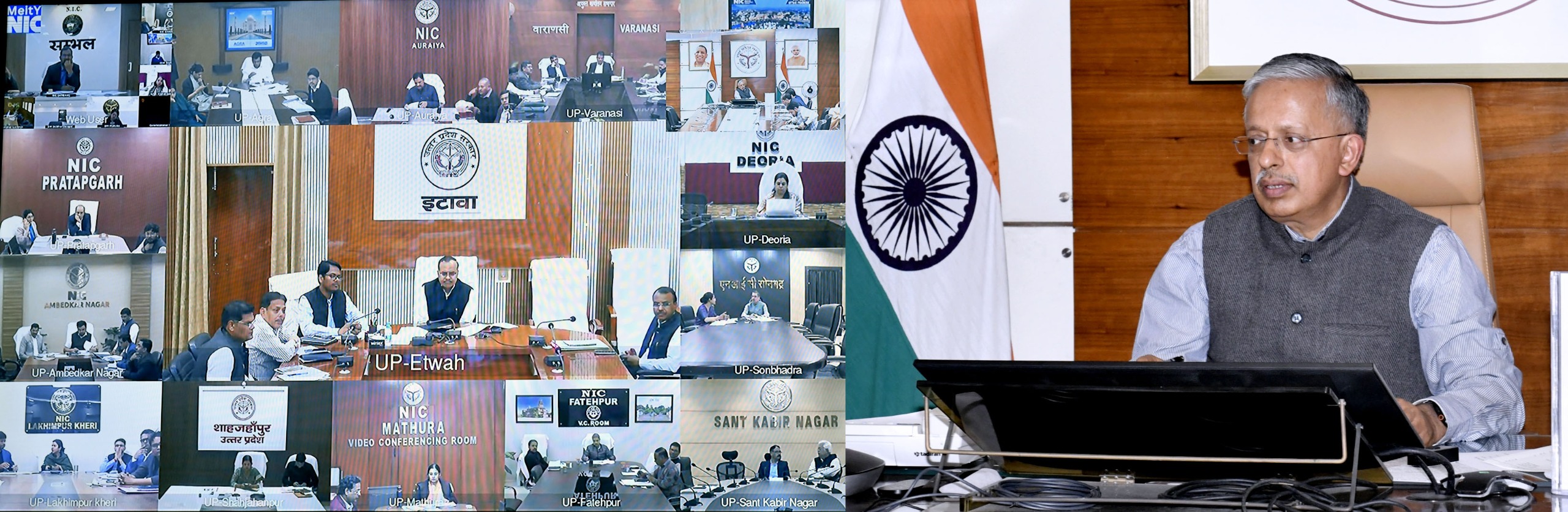 लखनऊः मुख्य सचिव श्री एस.पी.गोयल ने वीडियो कॉन्फ्रेंसिंग के माध्यम से सभी मंडलायुक्तों एवं जिलाधिकारियों के साथ साप्ताहिक समीक्षा बैठक कर विभिन्न जनकल्याणकारी योजनाओं की प्रगति की समीक्षा की तथा आवश्यक दिशा-निर्देश प्रदान किए।